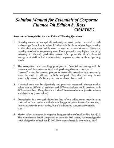 Read Online ESSENTIALS OF CORPORATE FINANCE 7TH EDITION CHAPTER CASE SOLUTIONS Library Binding